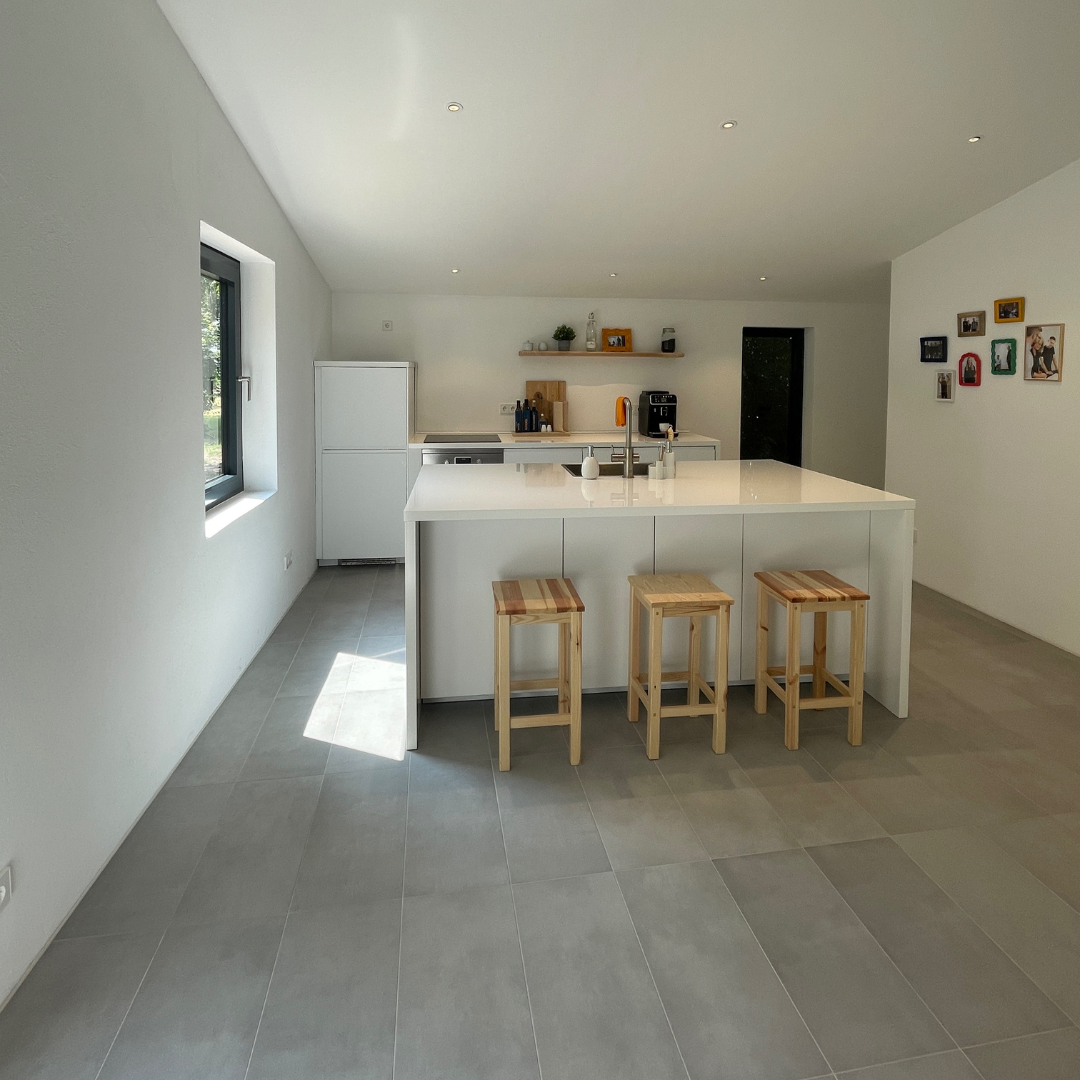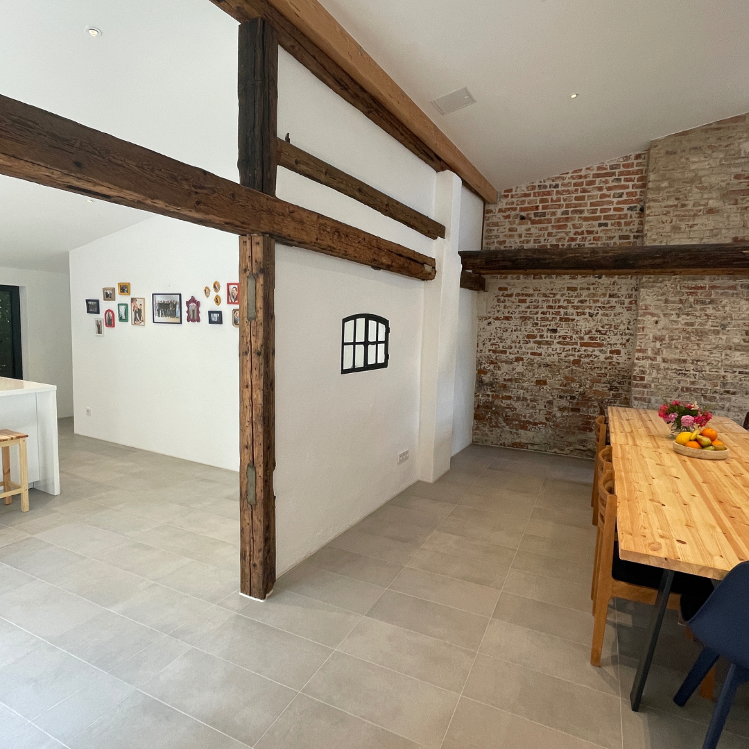 Anfang September wurde unsere neue Küche von IKEA aufgebaut – das Herzstück bildet eine zentrale Kücheninsel, die den Raum optisch und funktional aufwertet. Im Anschluss wurden neue Türen eingebaut. Danach starteten die Malerarbeiten. Neben den Wänden wurden auch das schöne Stallfenster sowie unsere Stahltür sorgfältig aufgearbeitet und frisch lackiert.