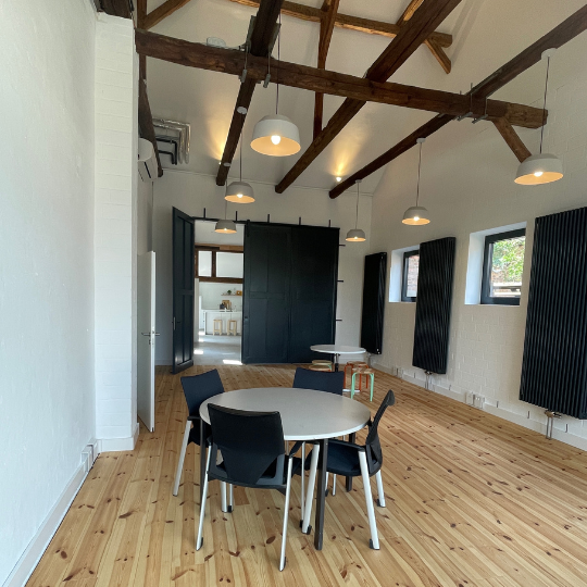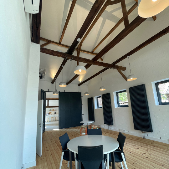 Im ersten Bauabschnitt wurde der Anbau erweitert und mit neuen Fenstern ausgestattet. Nach einer vorübergehenden Baupause haben wir die Arbeiten im Januar 2024 wieder aufgenommen. Dafür stellten wir bei rpb ein internes Planungsteam zusammen, entwickelten gemeinsam mit unserer Vermieterin neue Konzepte und holten Angebote von Handwerksbetrieben ein.